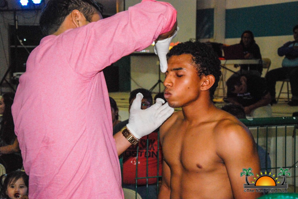 The following day, around 10PM, the event officially started at the ‘Salon Bella Vista’ in downtown Chetumal. Each fight consisted of three rounds of five minutes each. The venue was packed, and after the presentation of the fighters, the opening fight saw Belizean Cawich taking on Joshua Espinoza ‘Golden Boy.’