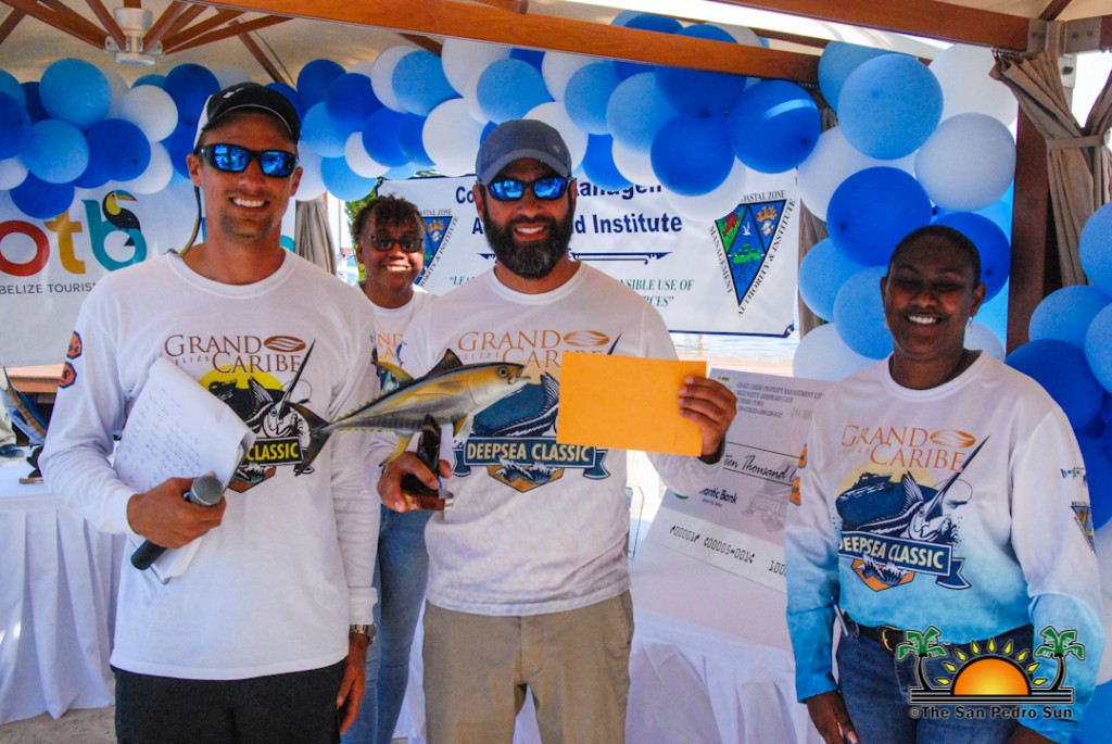 On the last day of the tournament on Sunday, August 12th a large crowd of fishing fans gathered at Grand Caribe north of Ambergris Caye to support their favourite teams. All boats were back at the weigh station by 2PM and after points had been tallied, winners were announced, starting with the individual prizes.