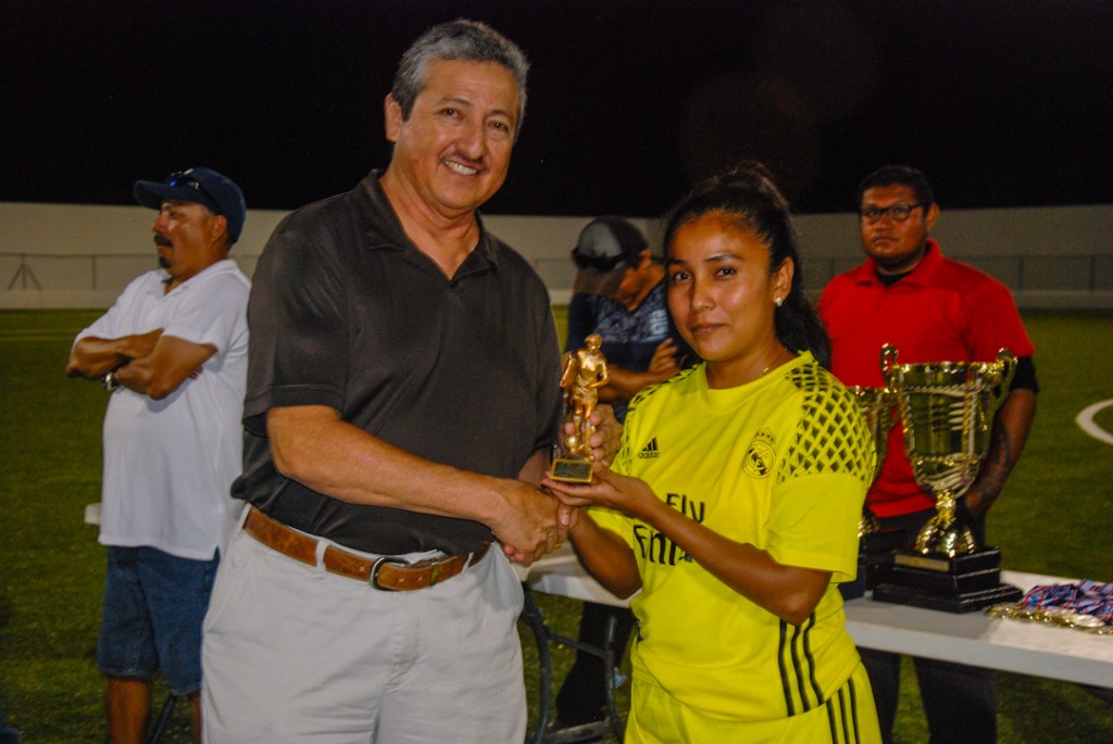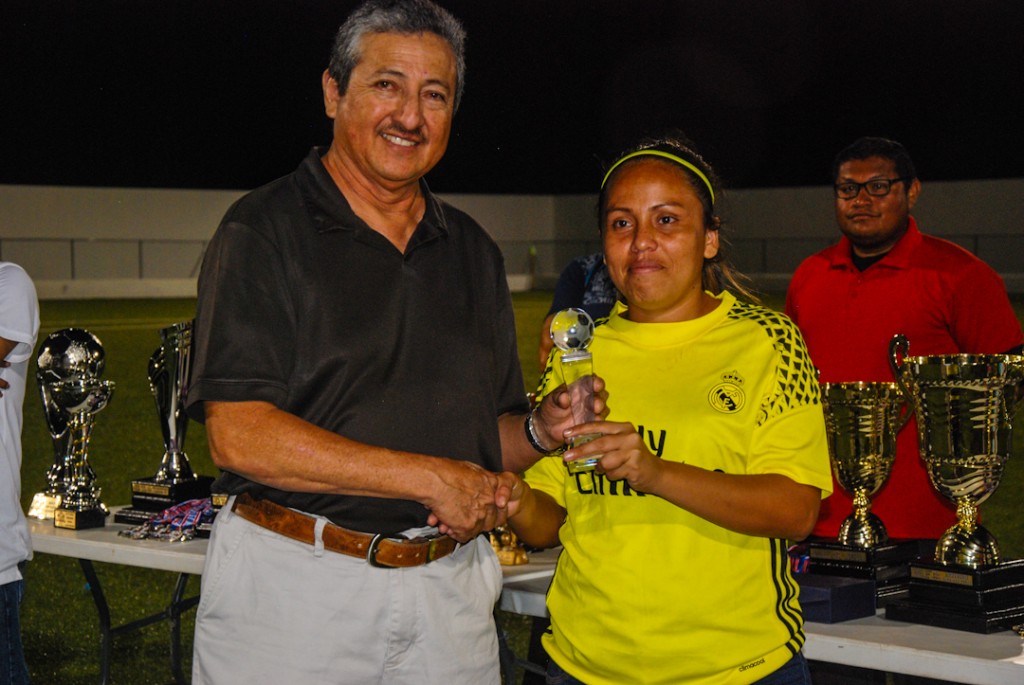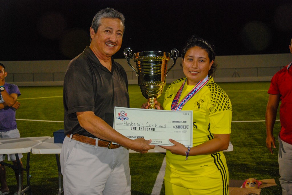 In the female category, the Best Goal Keeper award went to Emelie Cerpa from Island Warriors, Top Scorer and the Most Valuable Player award to Island Warrior’s Nailiney Manzanero, Best Defense award went to Anethe Desus from Ambergris Combined, the Best Rookie award went to Nayely Cruz from Ambergris Combined and Most Valuable Player went to Kaite Jones from Ambergris Combined. The Fair Play Award went to Ambergris Combined. The first place team, Ambergris Combined won a trophy and $1000, while the second place team, Golden Warriors walked away with $500 cash prize and a trophy.