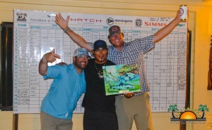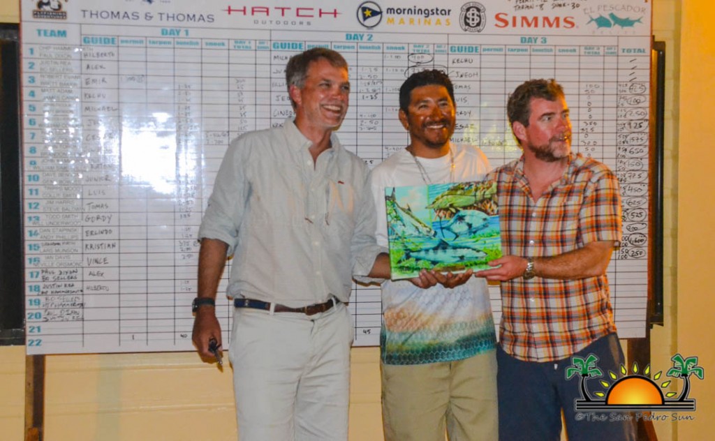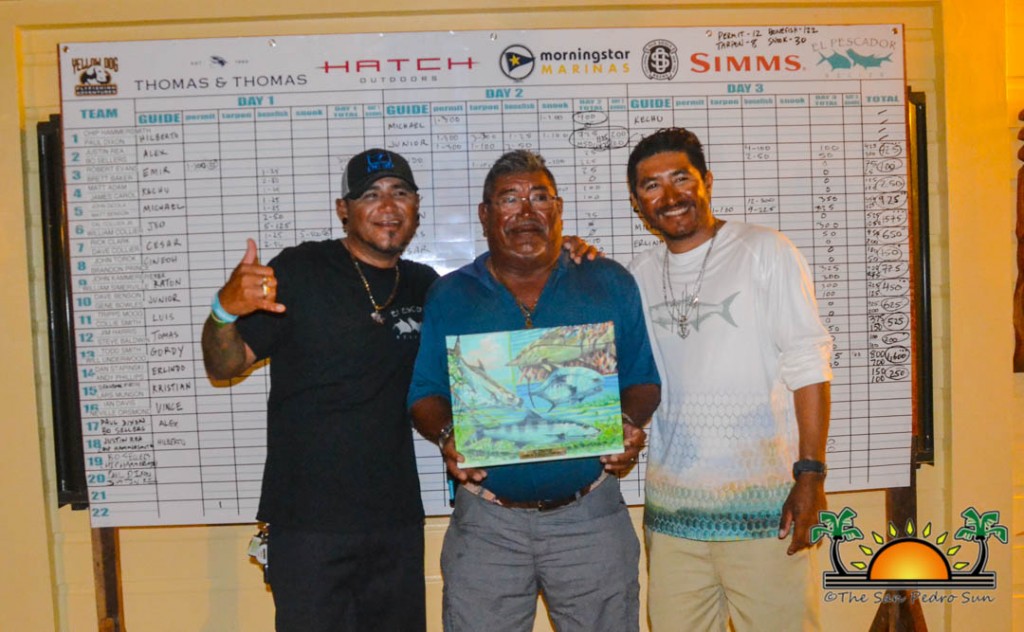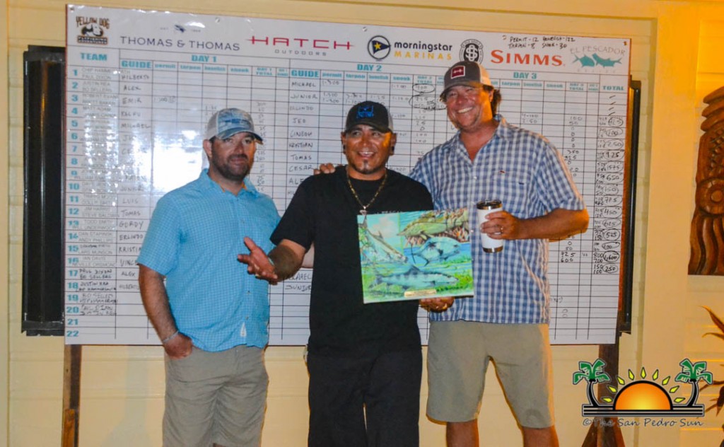 After all the festivities and celebration, prizes were given out to winners of the tournament. Overall winner, bringing in Super Slams, Grand Slams, extra points in Snook and Permit was Top Guide Luis ‘Junior’ Acosta. He guided anglers Bo and Justin and landed them on the winners’ podium as the Top Team. Taking a close second was guide Cesar Acosta, who missed the top prize by mere points. Clearly, fishing runs in the family! Individual prizes were also given out for the most tarpon, the largest permit, bonefish and snook, top teams and top anglers. Congratulations to all for a successful Redbone Tournament!