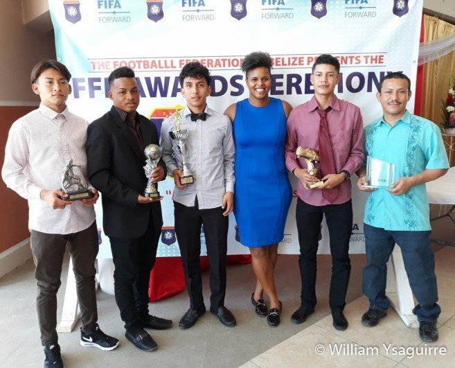 The Under-17 awardees were Jesse August of Centaur Cable – Most Valuable Player, and his teammates Jaheim Augustine – Best Forward, Miguel Uh – Best Defense, Alexis Chan – Best Midfielder, and Izhar Carillo – Best Goalkeeper. Centaur’s Orlando Trejo Dunn received the Best Coach award, and Alwin Zelaya of Bella Vista received the Most Goals award. Carillo could not be present to receive his award due to a death in the family, while Jaheim Augustine had northern high school football regionals and was not present.