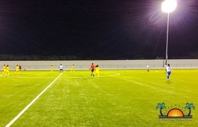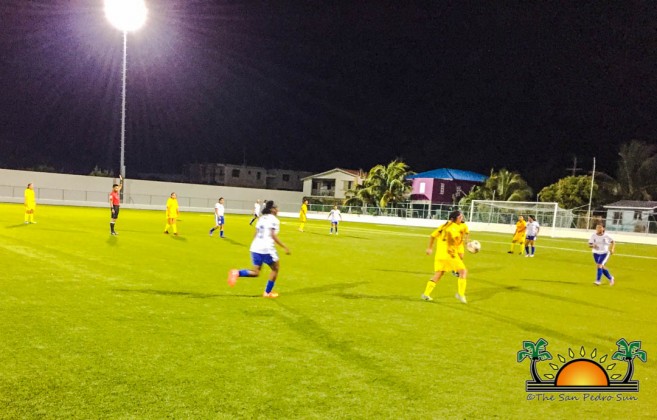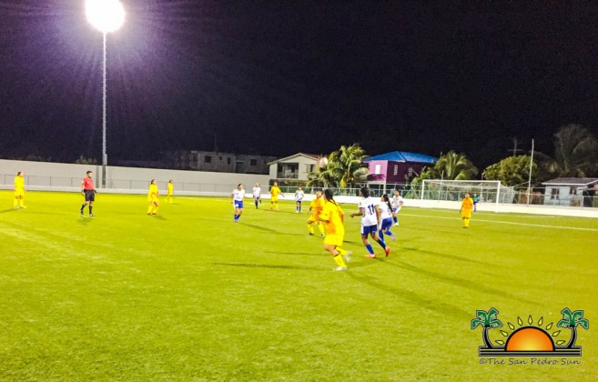 The match began promptly at 7:30PM, with the Gladiators determined to win. Their first goal into the game came courtesy of Kaite Jones. At minute 30, Jones found another opportunity at the net and nailed a second goal for her team. A few minutes later, Gladiator’s Janellie Chan nailed another goal. The visiting team continued with total control of the ball and scored another goal at minute 37, courtesy of Maria Acosta. A minute after, Jones went for the hat trick, scoring yet again. With the visiting team leading 5-0, the island girls found themselves on the defense, unable to respond. The first half came to an end with Orange Walk Gladiators leading 5-0.