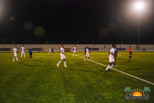 Heading to the break with a 0-0 score, the San Pedro Pirates F.C were feeling the pressure, as they had to score at least one goal to remain in the championship hunt. The Belmopan Bandits had the advantage, having won the first game 1-0.