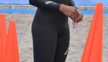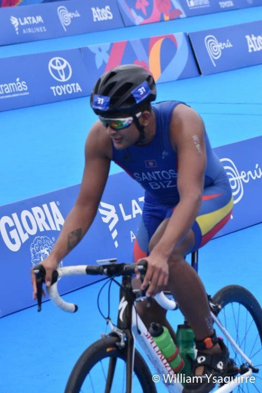 Saturday afternoon also saw Santos competing in the Triathlon at the Agua Dulce beach in the Chorillos district of Lima. He completed in the 1.5 kilometers swim in a cold sea at 15.1 degrees Celsius, and the 40-kilometer bike ride, but did not complete the run, because of the time gap. Out of the 32 men who started the race, only 28 finished.