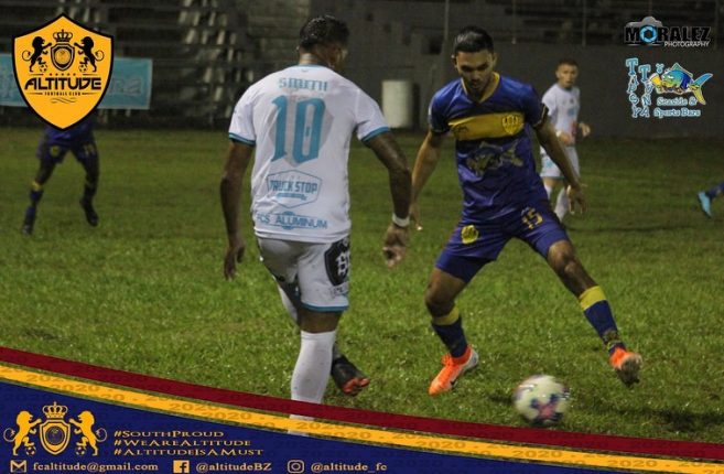 The island team was coming out of two consecutive home victories, determined to nab a home-away game to climb the ladder of the Premier League of Belize’s standings. It was raining, and the pitch appeared challenging, being slippery due to the mud on the terrain. Nevertheless, the Pirates took control of the match in the first minutes of the first half. At minute 7, Jesse Smith executed a spot-kick with his killer left leg, scoring the first goal for the island team. However, eight minutes later, Altitude’s Jose Urbina tied the game. The remainder of the first half did not show any significant developments, and both teams retreated for intermission with a 1-1 score.