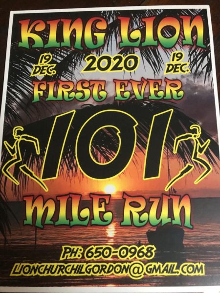 Island marathoner Ian ‘Lion’ Gordon is currently organizing and preparing for the first-ever ‘King Lion 101 mile run’ challenge set for December 19, 2020. This event is the first of its kind in Belize, and Gordon expects to complete the challenge in 16 hours. He is inviting others to join him, and he is calling on sponsors that may want to support this event.