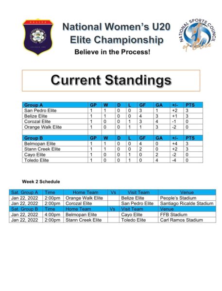 San Pedro does not have a team playing in the U-17 women’s category. Following the weekend’s games, Belmopan and Corozal dominate the division.