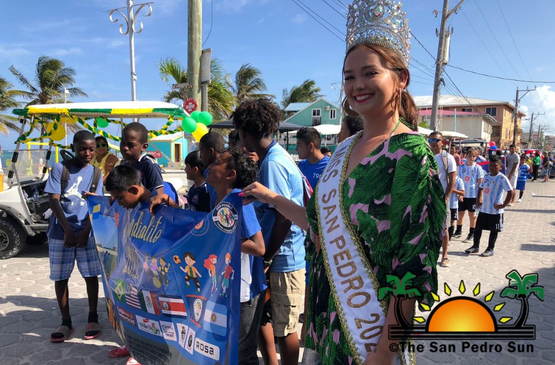 The tournament started with a short parade through downtown San Pedro with Miss San Pedro 2022-2023 Faith Edgar leading the march with the participating teams. The parade included decorated golf carts and colorful posters. Proud parents accompanied their children as they marched in the respective uniforms of their favorite teams.