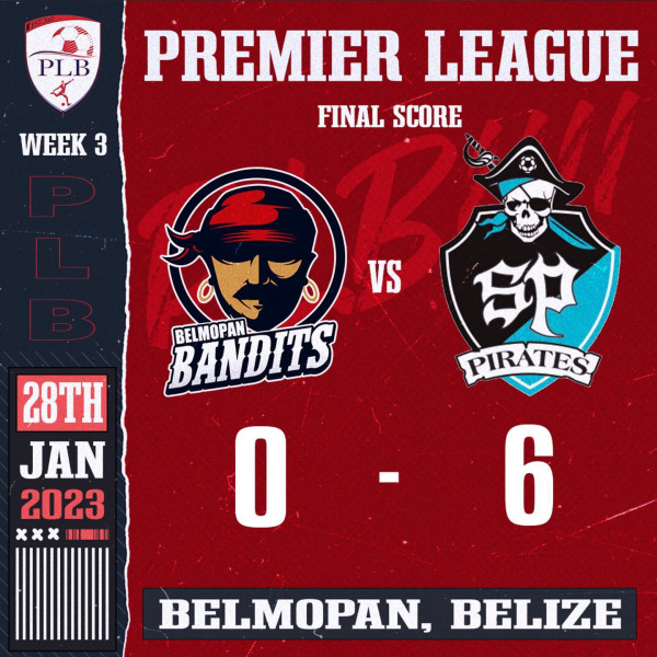 After their third consecutive victory on Saturday, January 28th, the San Pedro Pirates are leading the Premier League of Belize (PLB) Closing Season with nine points. The island men travelled to the Capital City of Belmopan, where they crushed team Belmopan Bandits 6-0 at the Isidoro Beaton Stadium.