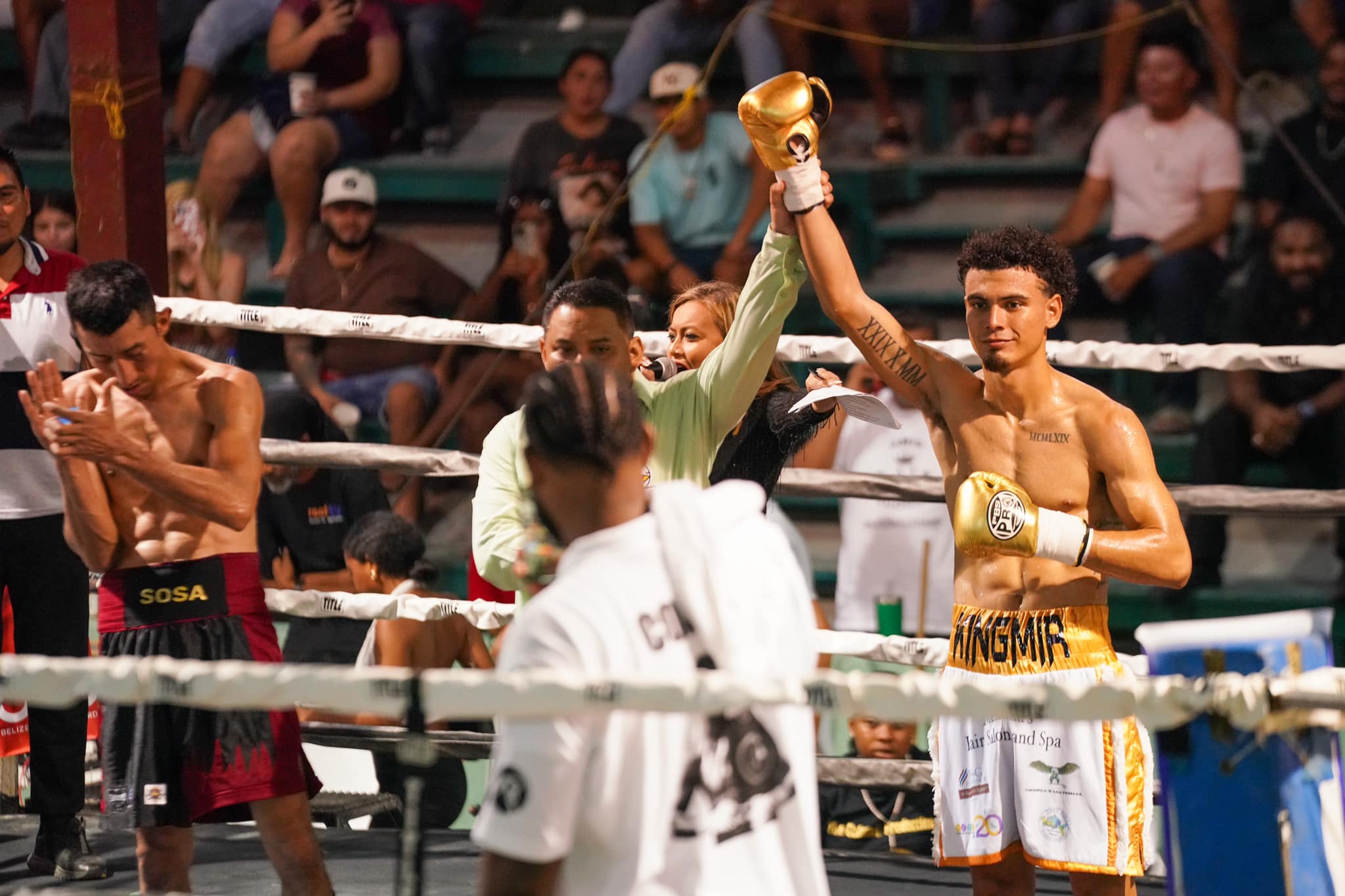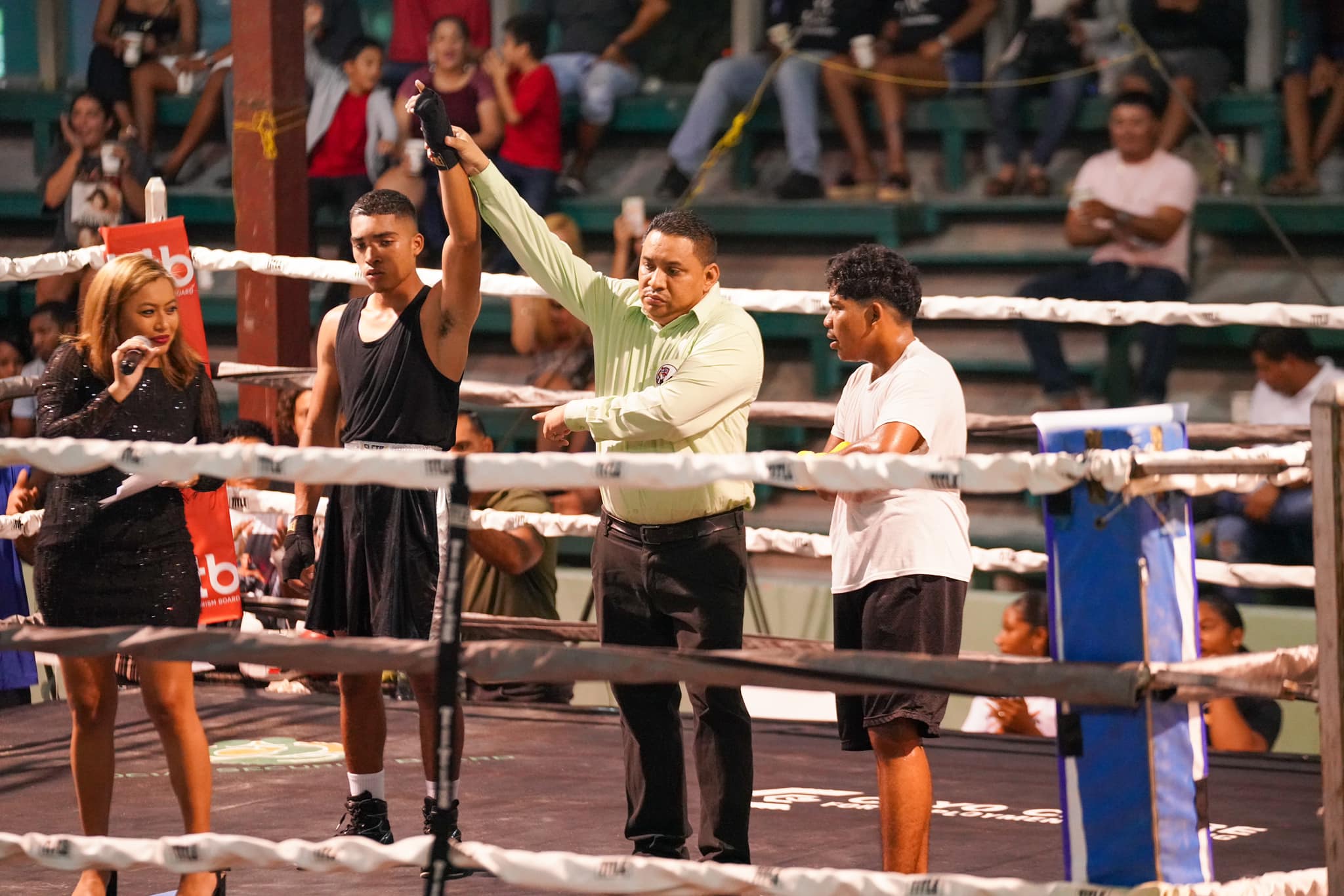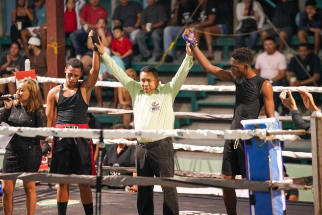 The event, sponsored by the Belize Tourism Board, started with three exhibit fights. Following these, Belizean national Lightweight champion Amir Rudon defended his title by taking down his opponent, Mexican boxer Ruben Reyes, in the first round. Rudon impressively defeated Reyes with a technical knockout.
