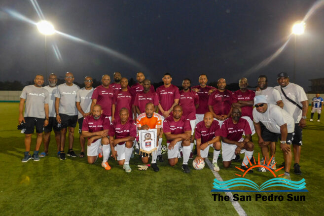 The San Pedro Veterans Football Club (FC) emerged victorious following a friendly match against the United States-based team RUM FC on Saturday, May 18th, at the Ambergris Stadium. The game saw the island’s veteran footballers show their skills on the field, resulting in a 4-1 victory.