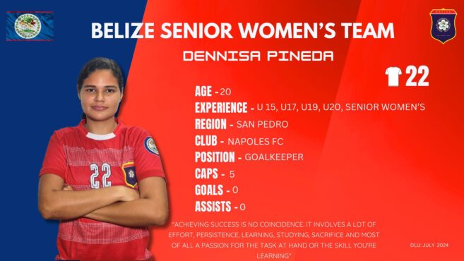 Pineda expressed her honor in representing her island home with the senior football team. She called on all islanders and Belizeans across the country to support them. Pineda is familiar with the senior female team, having played with the Lady Jaguars in February 2022 during the CONCACAF Women’s Championship in San Salvador, El Salvador. She also represented the country abroad in El Salvador in July of 2023 with the University of Belize Black Jaguars. At that time, the Belizean female team joined more than 1,700 athletes as they competed in the VIII Juegos Deportivos Universitarios Centroamericanos (Central American University Games).