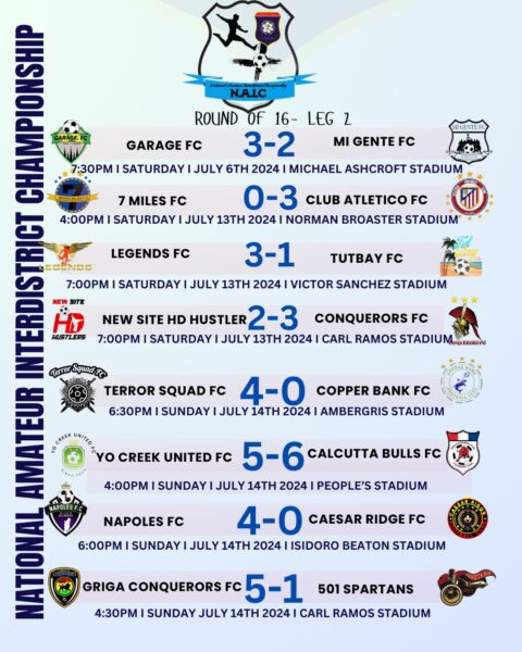 The recent results from games played on July 13th and 14th showed that the teams contesting the quarterfinals had solid scores in their favor. Club Atletico crushed 7 Miles FC 3-0, while Legends FC overcame Tutbay FC 3-1. Terror Squad had no mercy on Copper Bank FC, crushing them 4-0. Napoles FC did the same against Caesar Ridge FC, winning the match 4-0. EZ Griga Conquerors did not give 501 Spartans many chances and served them with a 5-1 defeat. Mi Gente lost 3-2 to Garage FC, but with the overall goal score cumulative, they managed to advance to the quarterfinals. Conquerors FC struggled against New Site HD Hustler but secured a tight 3-2 victory.