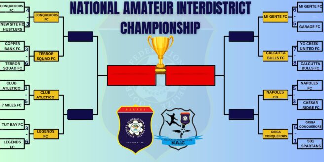 Get ready for a thrilling weekend as the National Amateur Interdistrict Championship (NAIC) enters its quarterfinal stage. On July 20th and 21st, four high-stakes football matches will unfold across the country. One of these intense battles will occur at Ambergris Stadium on Sunday, July 21st, pitting the island Football Clubs (FC), Terror Squad FC, and Conquerors FC, against each other. The game kicks off at 6:30 PM, promising an evening of heart-pounding action.