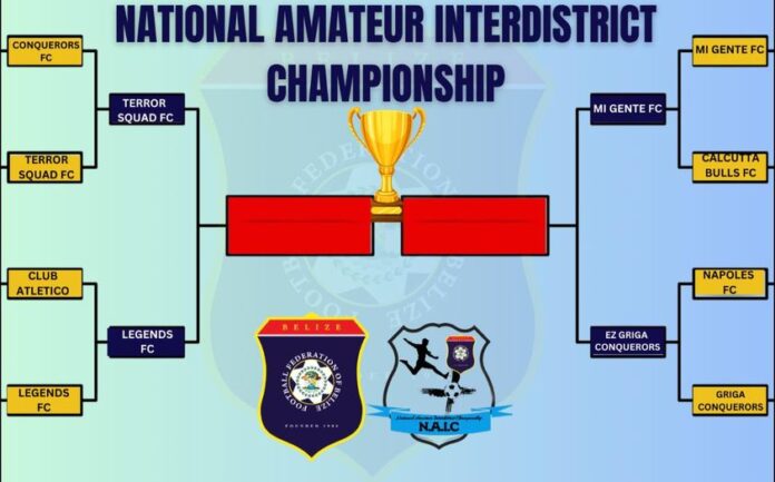 Four football clubs (FC) from across the country have advanced to the National Amateur Interdistrict Championship (NAIC) semi-finals. One of these teams is Terror Squad FC from San Pedro Town, which is preparing to compete for a place in the national tournament finals. The other teams include Legends FC, Mi Gente FC, and EZ Griga Conquerors. The first leg of the semi-finals will begin this weekend. Terror Squad will host Legends FC on Saturday, August 3rd, at 7:30PM at the Ambergris Stadium.