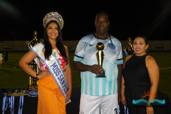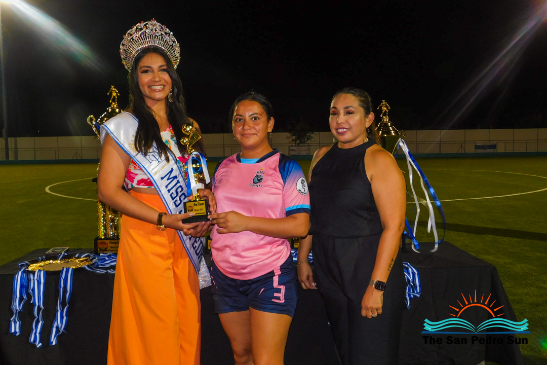 Immediately after, Councilor Adaly Ayuso and her committee presented players with individual prizes. Shark Shooters’ Dulce Leiva received the award for Best Female. James Sanchez was recognized for scoring the Most Goals, and Alden Augustine, AKA AC, received the Most Valuable Player trophy.