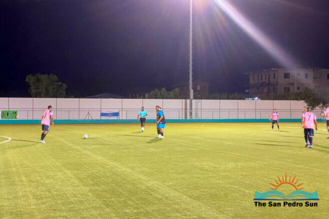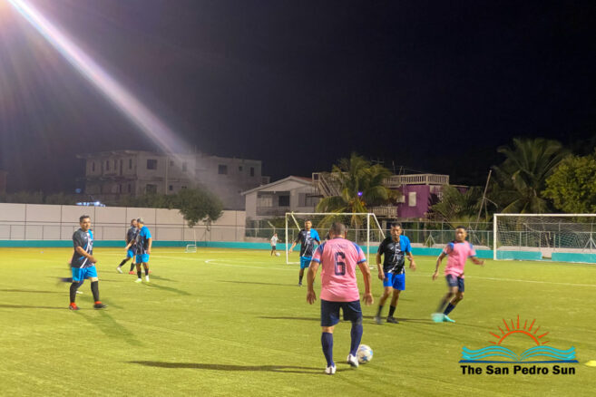 The ball started rolling at 7:30PM before a crowd of fans supporting their favorite teams. Tropical Strikers started the game with an offensive move, which saw their first goal in the 7th minute by Angel Cantun. Shark Shooters went on the attack, trying to even the score. But Cantun managed to steal another opportunity and, in the 12th minute, scored Tropical Strikers’ second goal.