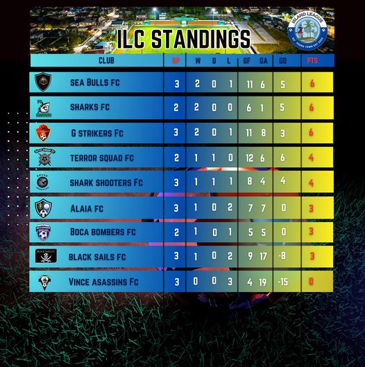 The Island Football League matches took place on October 11th and 12th, with four intense games despite the bad weather. The first day’s games were between Shark Shooters and G Strikers, followed by Alaia and Vince Assassins. G Strikers and Vince Assassins emerged as the top teams on the first day. Terror Squad overcame Black Sails the following day, reaching fourth place with three points. The last match saw Boca Bombers defeating the Sea Bulls in a 4-1 point game. The current standings show the Sea Bulls leading with six points, followed by Team Sharks and G Strikers.