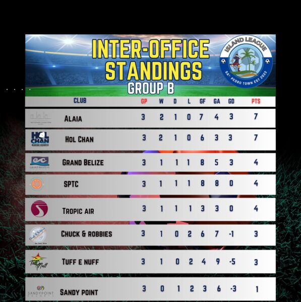 The Inter-Office tournament kicked off with a bang on Sunday at 3PM, delivering a series of thrilling matches. The games included M & B against Victoria House, Sandy Point against Alaia, Heaven Veggies against X Site, and Tuff E Nuff taking on SPTC. The other games featured Ramon’s Village against Mahogany Bay, Tropic Air versus Hol Chan Marine Reserve, FCs against Captain Sharks, and the final match between Grand Belizean Estate and Chuck & Robbies. The intense Sunday football resulted in Ramon’s Village leading Group A with nine points, followed by FC and Mahogany Bay. In Group B, Alaia leads with seven points, followed by Hol Chan Marine Reserve and Grand Belizean Estate.