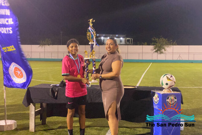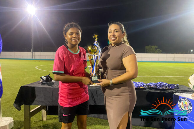 On Sunday, February 16th, the San Pedro Town Council Sports presented trophies to three champions in the Youth League Tournament, specifically in the U15, U17, and female divisions. The participating teams included Barca, Man City, PSG, Lady Waverly, and Brave Ballers.