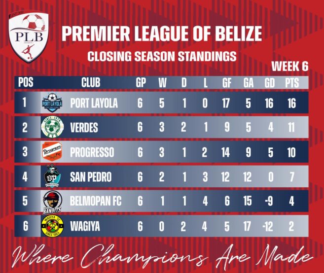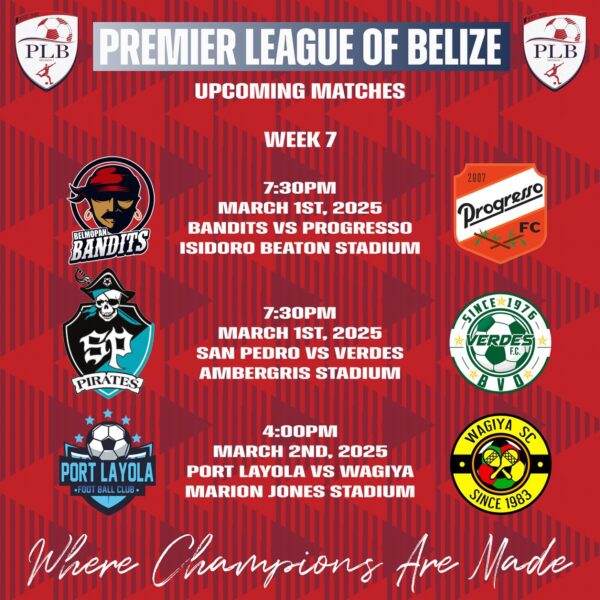 In other matches during Week 6, Progresso FC and Verdes FC played an intense game that ended in a 0-0 draw at the People’s Stadium in northern Orange Walk Town. Meanwhile, Port Layola remains undefeated after narrowly defeating Belmopan FC 1-0 at the Isidoro Beaton Stadium in Belmopan, the capital city.
