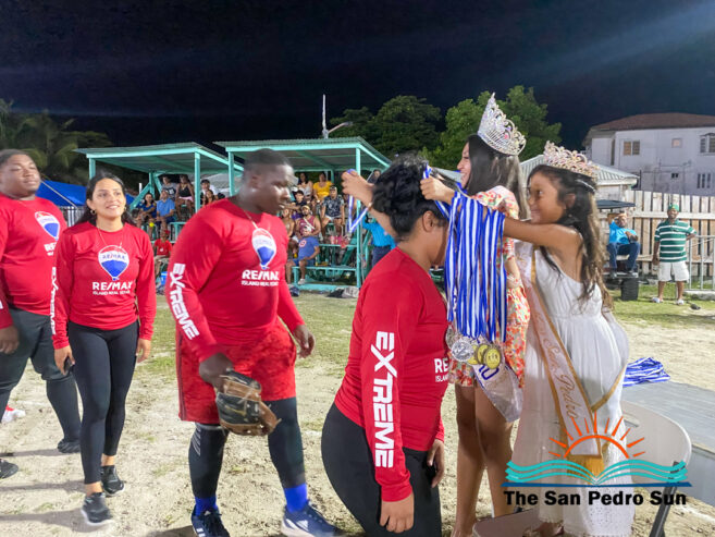 Team San Pedro Lil Sharks fiercely defended their title against Re/Max to take home the top trophy at the 2025 Co-Ed Softball Tournament on Sunday, June 8th. The decisive match was held at the Honorable Louis Sylvestre Sporting Arena, following a spirited third-place game between the Crushers and Marlins, which delivered an electrifying atmosphere as both teams showcased their skills. While the Lil Sharks emerged as champions, the Marlins claimed third place.