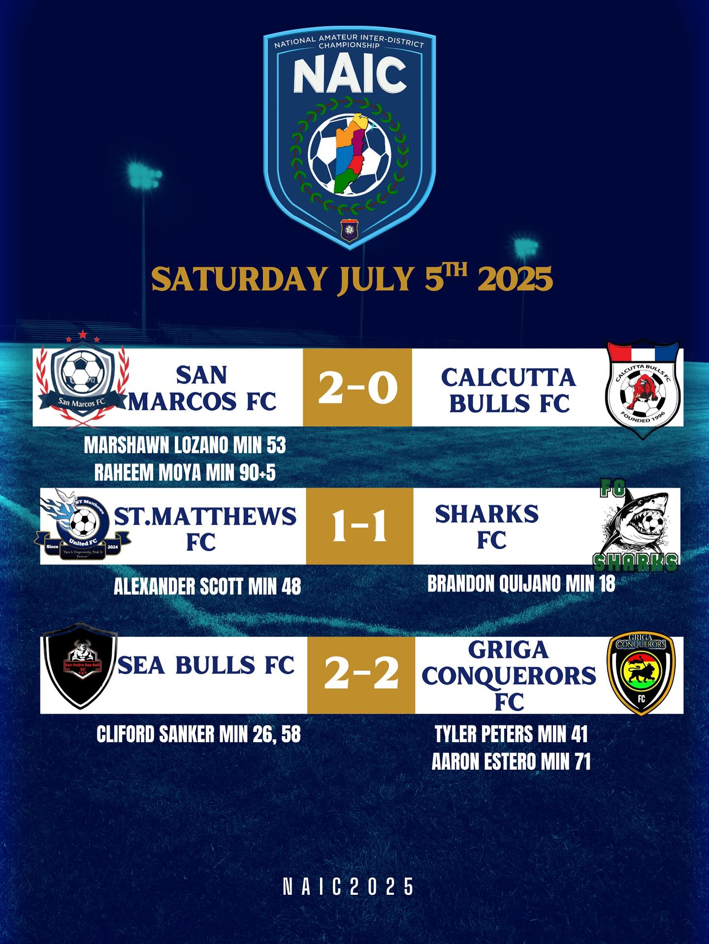 San Pedro’s Sea Bulls FC and Sharks FC are among the 16 teams participating in the 2025 National Amateur Interdistrict Championship (NAIC). The first leg of the football tournament kicked off on Saturday, July 5th, with both island teams ending their opening matches in a draw.