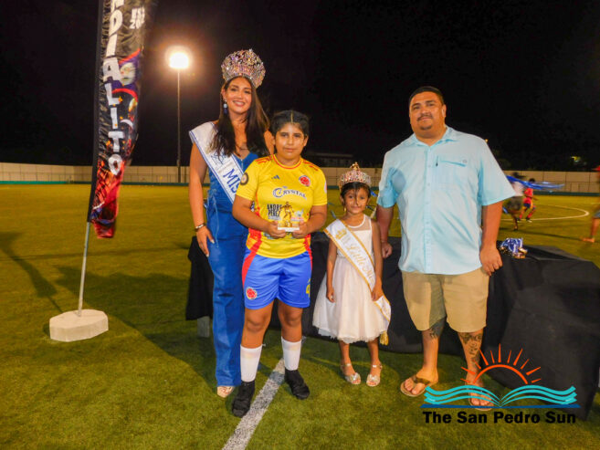 Following the games, an award ceremony was held with Mayor Gualberto “Wally” Nuñez, Councilor Adaly Ayuso, and Miss San Pedro Alexa Acosta. Chris Calderon received the Best Goalkeeper award, while AJ Escalante and Gian Luke were recognized for Most Goals. Wilmer Orellana was named Most Improved Player, Nayovi Requena was awarded Best Female, and AJ Escalante earned the Most Valuable Player award.