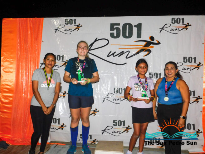 Councilor Adaly Ayuso of the San Pedro Town Council, Sports Coordinator Ada Cordova, and Kian Trejo from 501 Run Club congratulated all participants and thanked the volunteers for their continued support in organizing the event. Their teamwork helped ensure another successful and well-coordinated race, promoting health and fitness within the community.