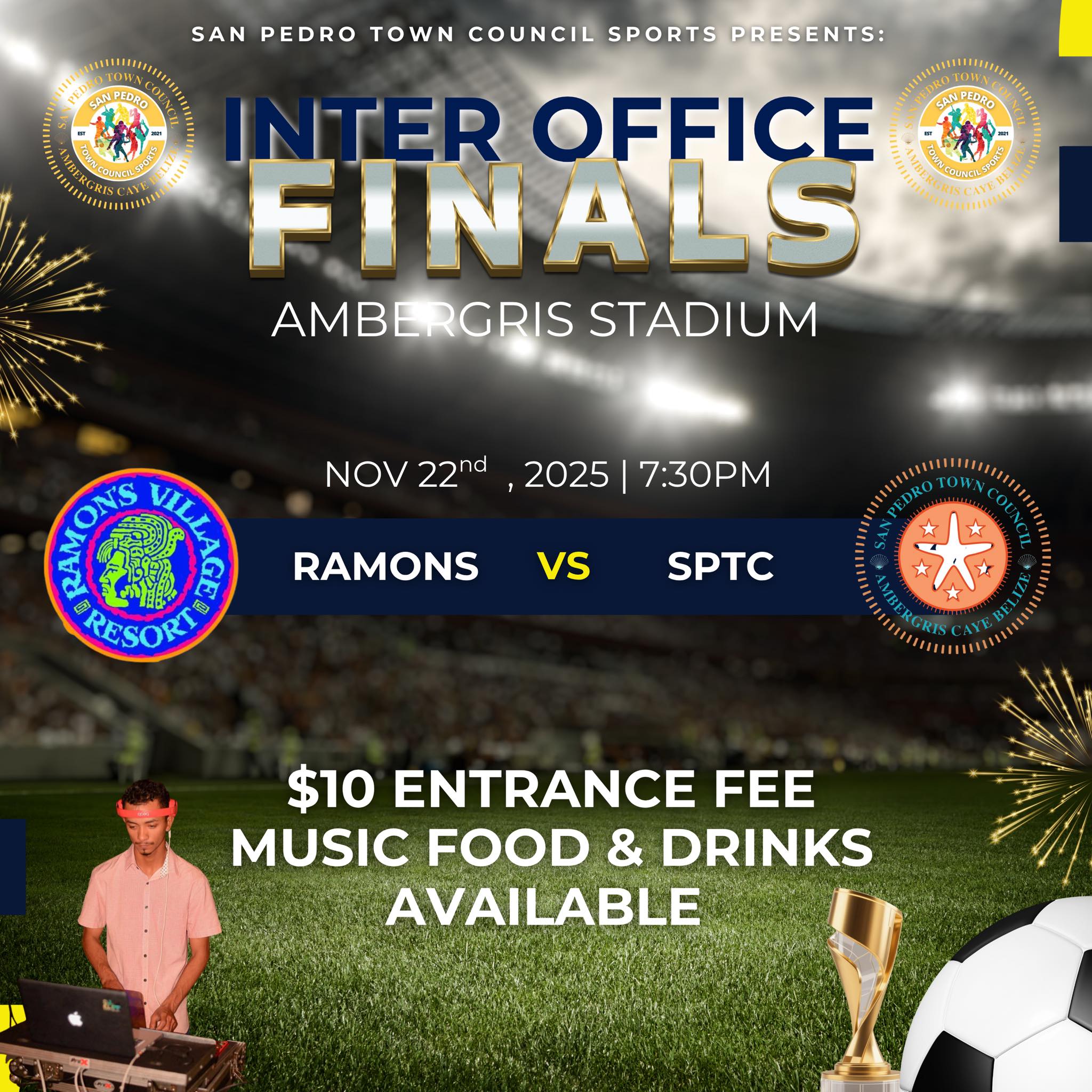 The Inter-Office Football Tournament finals are scheduled for Saturday, November 22nd, at the Ambergris Stadium. The championship match kicks off at 7:30PM and will feature defending champions Team Ramon’s Village facing the San Pedro Town Council (SPTC).