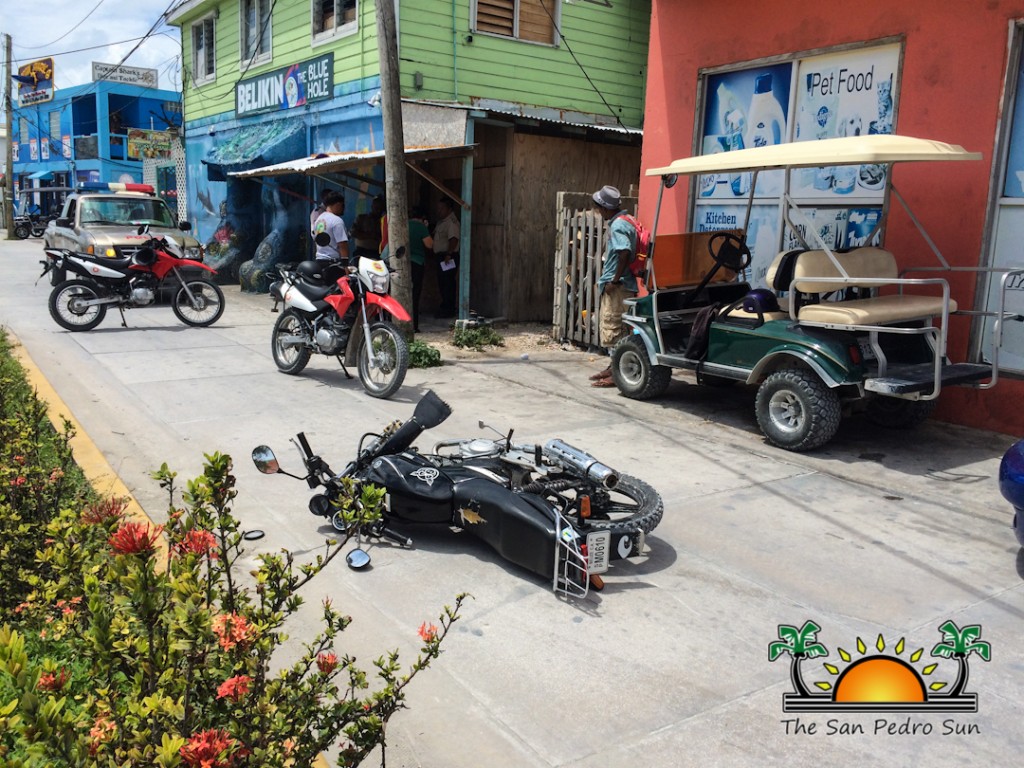 On Friday, September 23rd, the San Pedro Traffic Department (SPTD) responded to a traffic accident in the Airstrip Area of San Pedro Town. The accident happened around 11:30AM, and involved a parked taxi car and a motorcycle.traffic-accident-airstrip-area-3