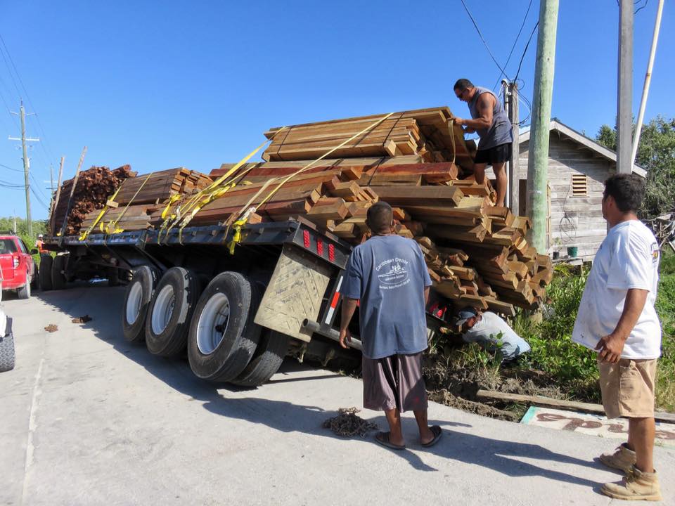 The San Pedro Traffic Department (SPTD) has confirmed that a large cargo truck loaded with lumber tipped over in northern Ambergris Caye on the afternoon of Monday, January 23rd. The vehicle apparently slipped off the road as it attempted to make the curve 3.5 miles north of San Pedro Town. No injuries were reported.