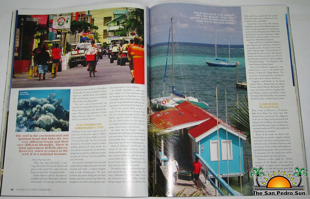 Boca-Raton-Observer-CoverTwo popular Belizean tourism destinations are featured in the February issue of “The Boca Raton Observer”. An award-winning lifestyle magazine from Boca Raton, Florida, USA, the magazine features everything from destination reviews to travelling advice. Focusing on two of Belize’s most popular destinations, The Observer highlighted San Pedro, Ambergris Caye and Placencia.
