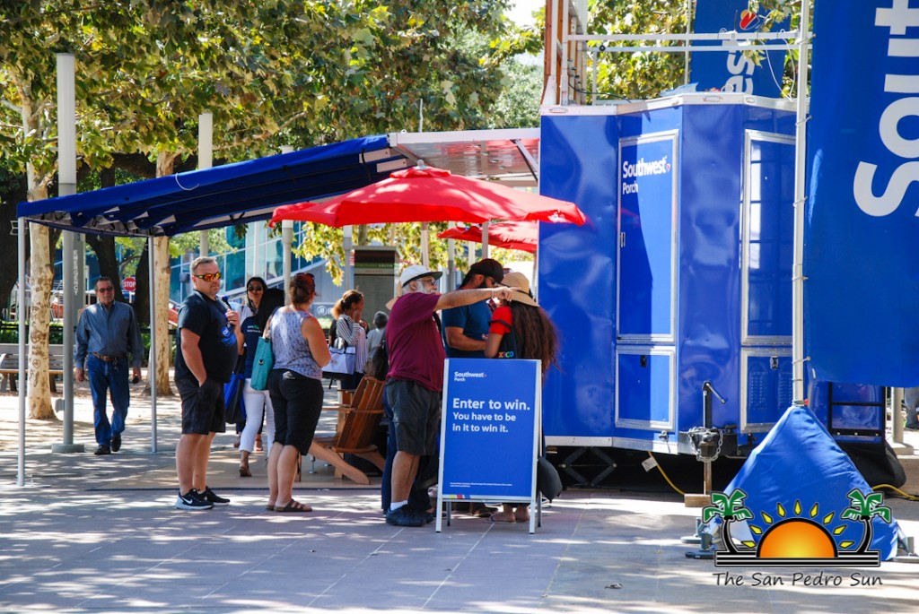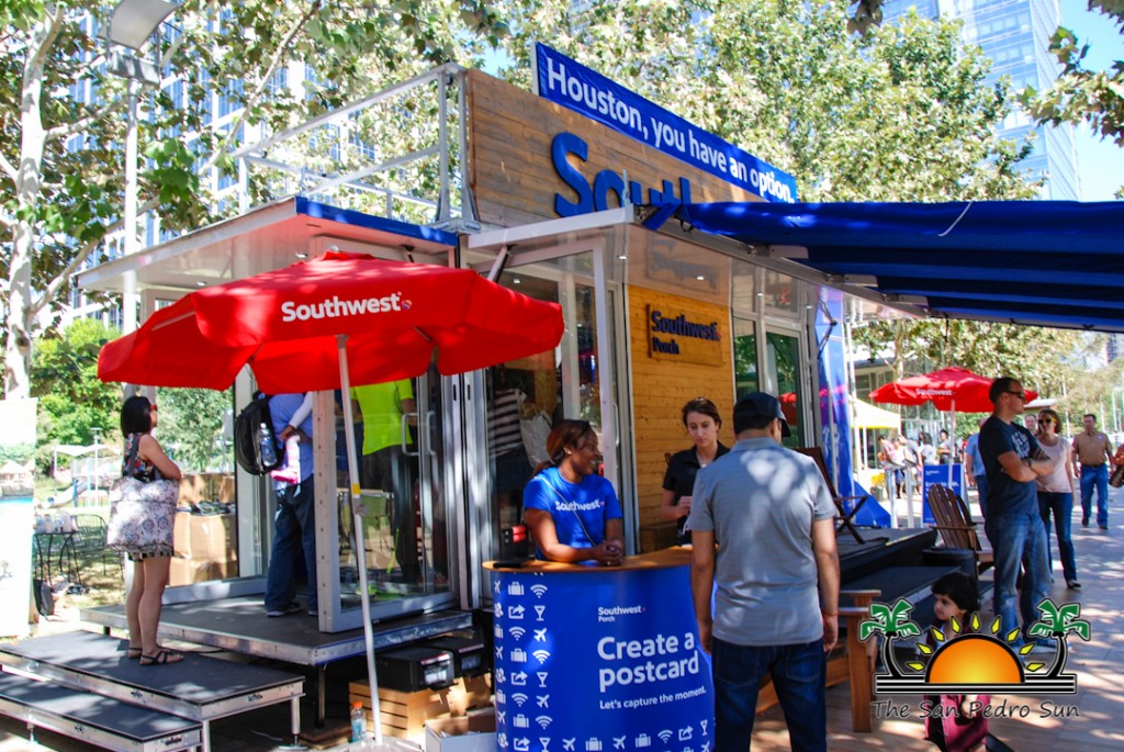 The San Pedro Sun had the opportunity to experience Southwest Airlines’ new service as well, taking the return flight #1013 to Houston, Texas. Associate Editor Mary Gonzalez was in the gateway city for three nights, spreading the warm Belize vibe. Southwest Airlines held a day of fun and information at Discovery Green Park in downtown Houston, and as early as 9:30AM, eager people lined up hoping to be in the first 100 to win $100 Southwest gift certificates. Fun and friendly staff members were giving out bags and sunglasses, while at a photo booth, visitors lined up to get their pictures taken with any of the many backgrounds available, including Belize! There were games on the lawn, and models wore diving gear to entice future divers to explore the waters of the Caribbean and Mexico. Later on in the evening, the movie Up was featured, with hot delicious popcorn and much family fun.