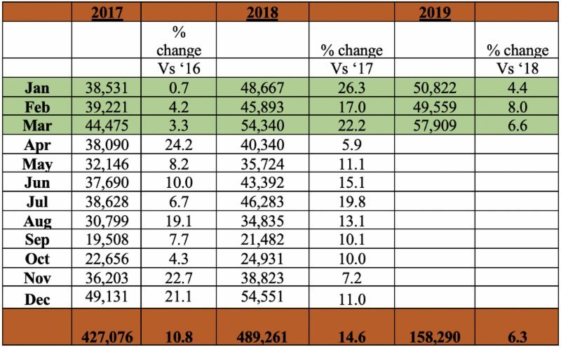 The following is a breakdown of the latest figures for the first quarter of 2019 for both overnight and cruise ship arrivals.