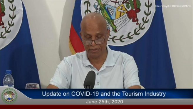 Barrow noted that delaying the opening of PGIA will be of no further good, as COVID-19 is far from going away, and Belize’s tourism industry must open now. He acknowledged the risks since Belize’s primary tourism market is the United States of America, where cases continue to surge, particularly in states like Florida, Texas, and California from where many flights originate destine to Belize. To further explain the different safety mechanisms the government will implement, Barrow was accompanied by a team consisting of Chief Executive Officer (CEO) of the Ministry of Human Development and Chair of the National Task Force on COVID-19, Judith Alpuche, Director of the Belize Tourism Board (BTB), Karen Bevans, Director of Health Services, Dr. Marvin Manzanero, Chief Executive Officer in the Ministry of Health, Dr. George Gough, and Director of Technology in the Prime Minister’s Office, Michael Singh.