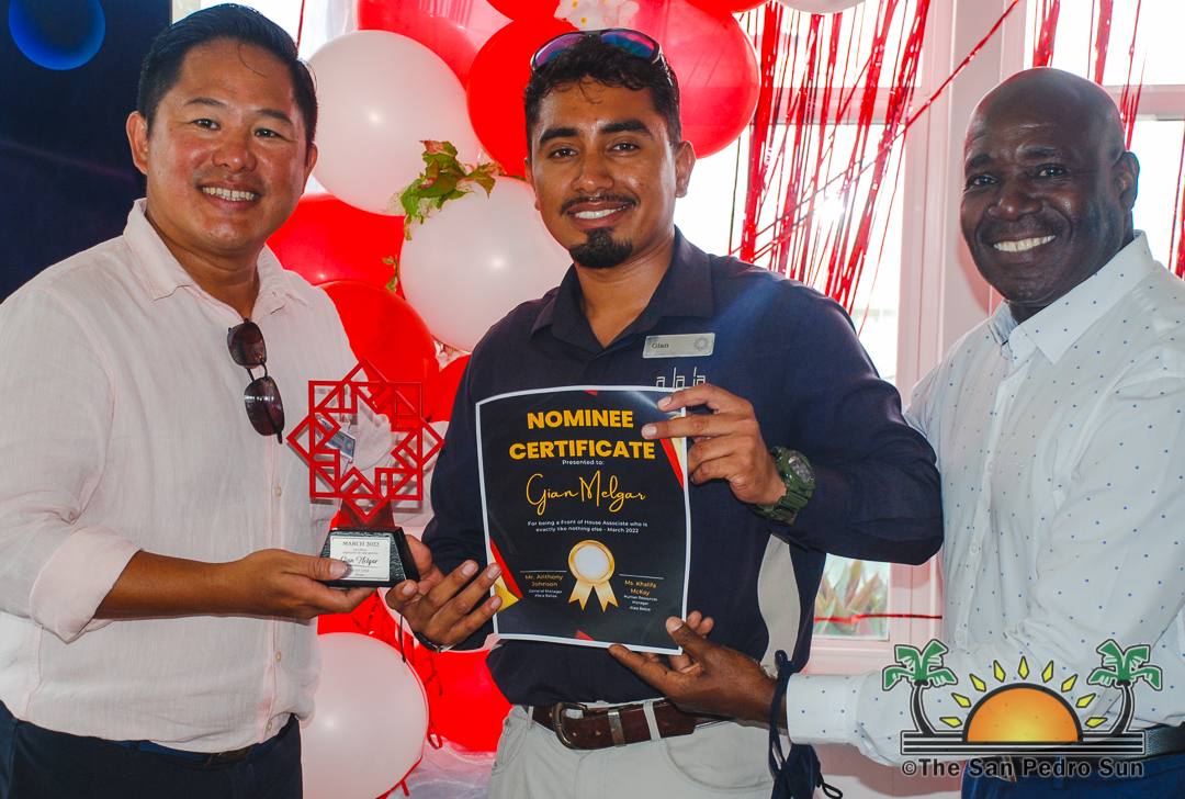 On Friday, June 17th, the luxurious, beachside Alaia Hotel in San Pedro Town, the first Marriott property in Belize, recognized the excellent work of their staff with an award ceremony at their seafront restaurant, The Deck. The awards recognized different employees for their extraordinary performance in the first quarter of this year within the sections/categories of Front of House Associate of the Month, Back of House Associate of the Month, Most Mentions on Trip Advisor, Manager for 1st Quarter, and Supervisor for 1st  Quarter of the year.