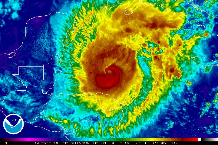 At 6:00pm the center of Hurricane Rina was located near 17.5 N, Latitude and 84.5 W, Longitude or about 244 miles east of Belize. Hurricane Rina is heading west at 3 mph with maximum sustained winds of 110 mph. Tropical Storm force winds extends out to 140 miles and Hurricane Force Winds extend out 30 miles from the centre. 2-4 inches of rainfall is anticipated. Rina is expected to become a major Hurricane within the next 24 hours.