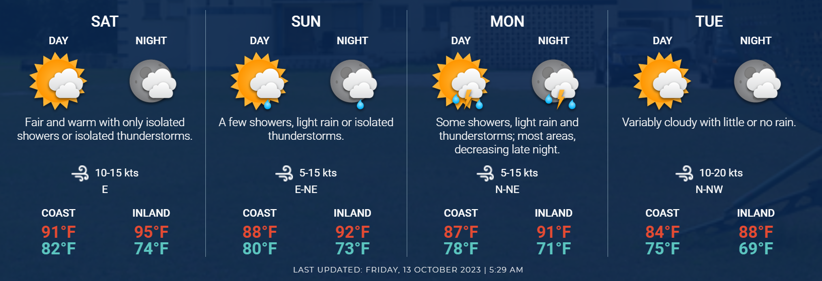 The latest report from the National Meteorological Service of Belize for the weekend suggests that the weather conditions will be hot and mostly dry for Friday. Over the weekend on Saturday, the forecast is for sunny weather with cloudy spells and afternoon or evening thunderstorms for the inland. On Sunday, a few showers and isolated thunderstorms may develop mainly along the southern coastal areas.