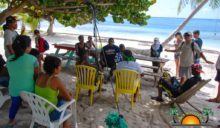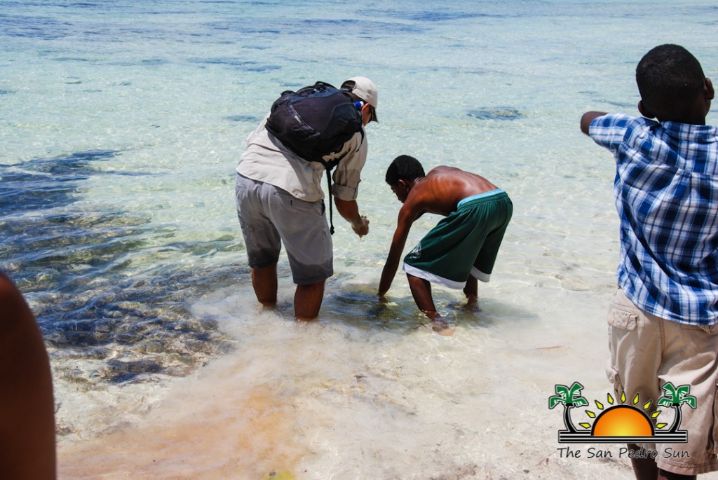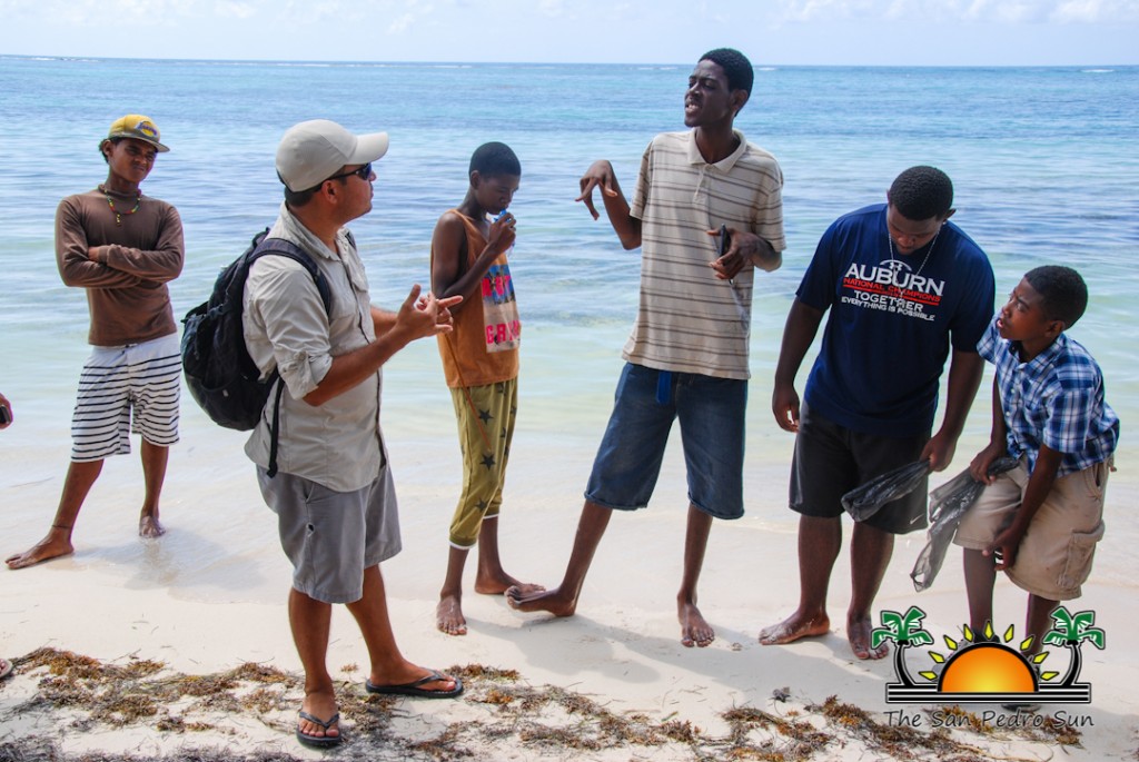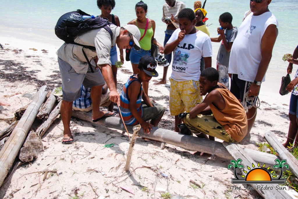 On Thursday, July 21st, the children were visited by members of the Blackadore Caye Management Staff. Biologist Valentine Rosado provided the campers with a lecture about the formation of the island, and the importance of preserving the natural environment. He even spoke to them about the turtle nesting that happens on the area. The educational lesson included a walk by the beach, where the group of children were shown examples of erosion on the shoreline. “We need to take care of the environment, specially the mangroves, which are plants that hold sediments and sand in place. If we don’t have these elements on the shoreline, then the sea just washes the sand away and thus, the beaches begin to disappear,” said Rosado. He pointed out to them that dead vegetation or marine creatures on the beach should not be moved, as these contribute to the building of the shoreline on the island.