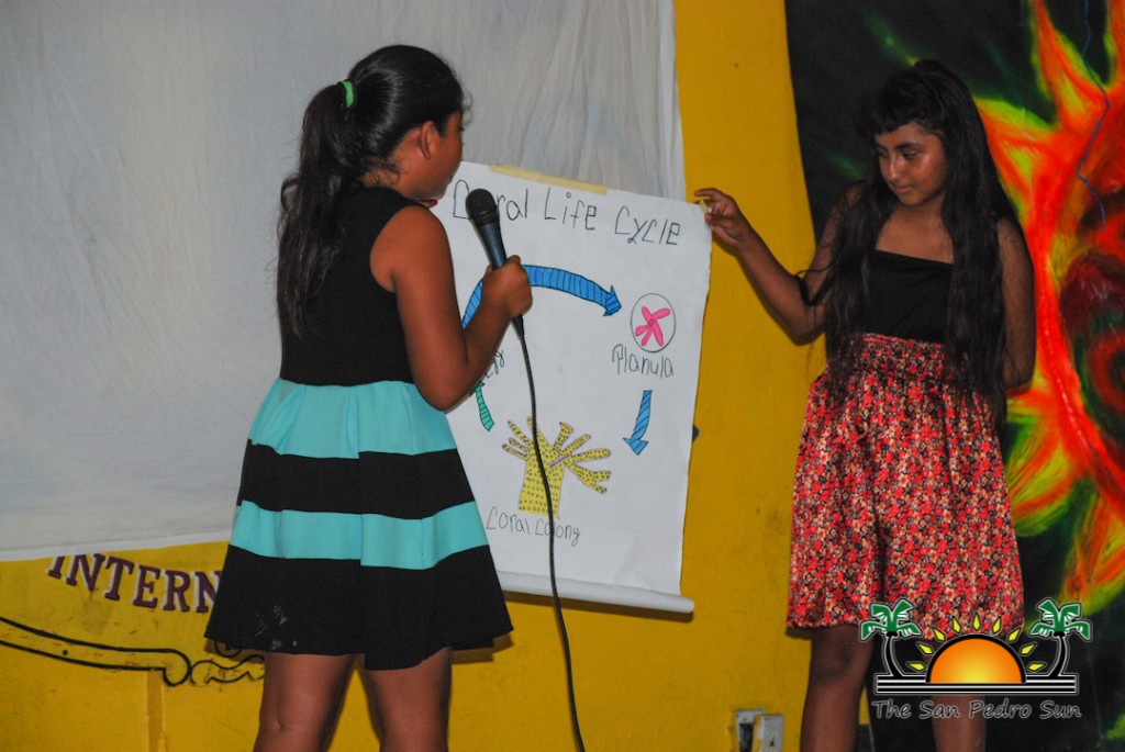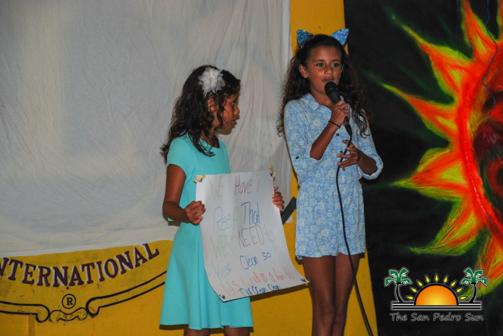 At the graduation ceremony held shortly after 7PM at the Lions Den, the camp participants presented their projects in front of invited guests and their parents. Immediately after, they were presented with their awards recognizing them as Kids Coral Experts. This recognition qualifies the participants as being very knowledgeable about the Belize Barrier Reef, particularly with the portion of the reef in front of Ambergris Caye.