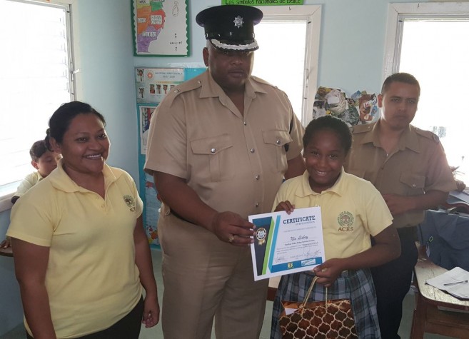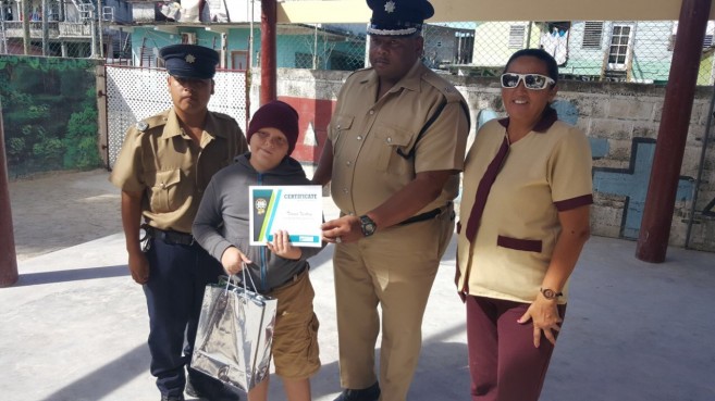 After the winners were selected, Chuc was accompanied by Officer in Charge of the Eastern Executive Coastal Unit, Superintendent Henry Jemmott to hand over the award certificate to the students. They visited both ACES and Isla Bonita Elementary where they had the opportunity to congratulate the students for a job well done.